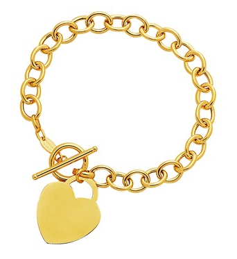 Toggle Heart Bracelet in 14k Yellow Gold Stock Number: 47988 This bracelet is crafted in 14k yellow gold and features an attached dangling heart accent. Secured with a toggle clasp. Price $626.40