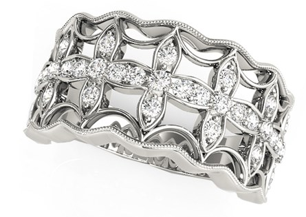 Diamond Studded Wide Multi-Diagonal Pattern Ring in 14k White Gold (5/8 cttw) Stock Number: 97490 This dramatic ring sparkles with a wide field of diamonds arranged in diagonal lines and set in 14k white gold. Price $1,415.78
